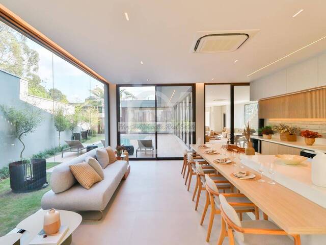 - Espaço gourmet integrado à área externa, com piscina cercada por um belo gramado e jardim