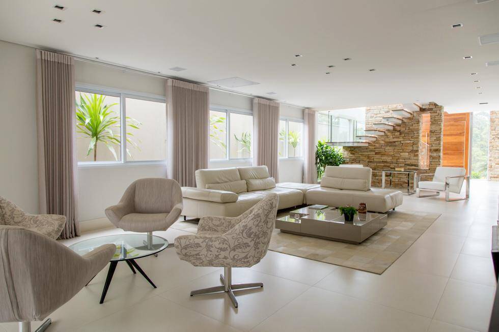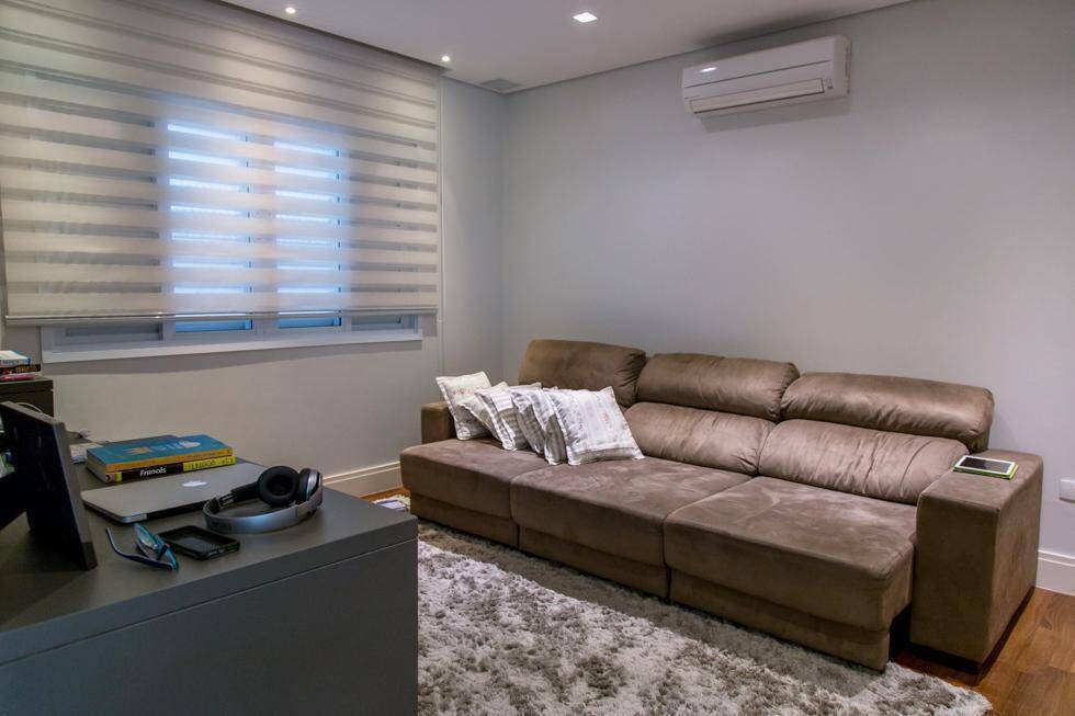 A sala de estar, ampla e luminosa, é o ambiente ideal para receber amigos e familiares, com espaço para até 03 ambientes e uma sofisticada lareira a gás que cria uma atmosfera acolhedora nos dias mais frescos. Além disso, um home-theater está disponível para momentos de entretenimento e relaxamento em família.