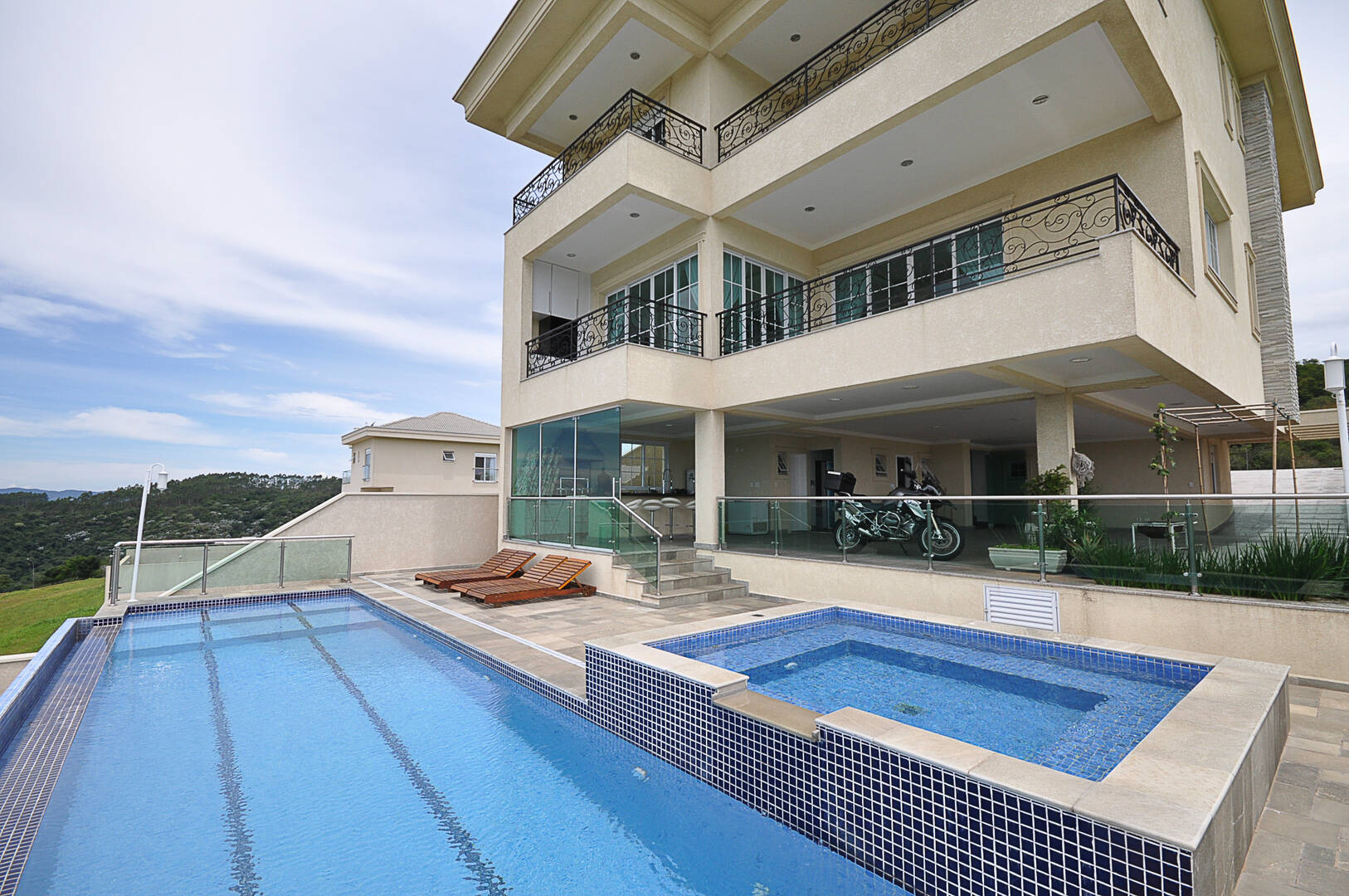 A área de entretenimento é simplesmente deslumbrante, com um home theater equipado com projetor para noites de cinema em família, duas churrasqueiras para festas memoráveis e uma piscina com borda infinita, onde você pode desfrutar de vistas deslumbrantes a qualquer hora.