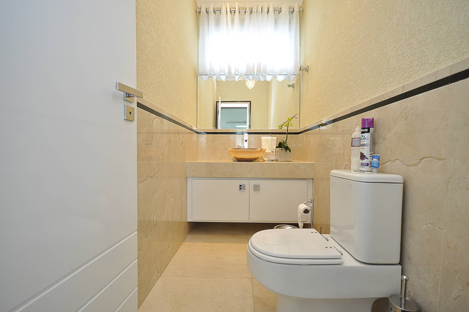 Cada cômodo desta casa foi projetado para impressionar. O piso da sala e do corredor de crema marfil exala sofisticação, enquanto os banheiros com pedra carrara importado elevam o padrão de luxo. A garagem de granito é um exemplo de atenção aos detalhes, assim como as louças e metais deca.
