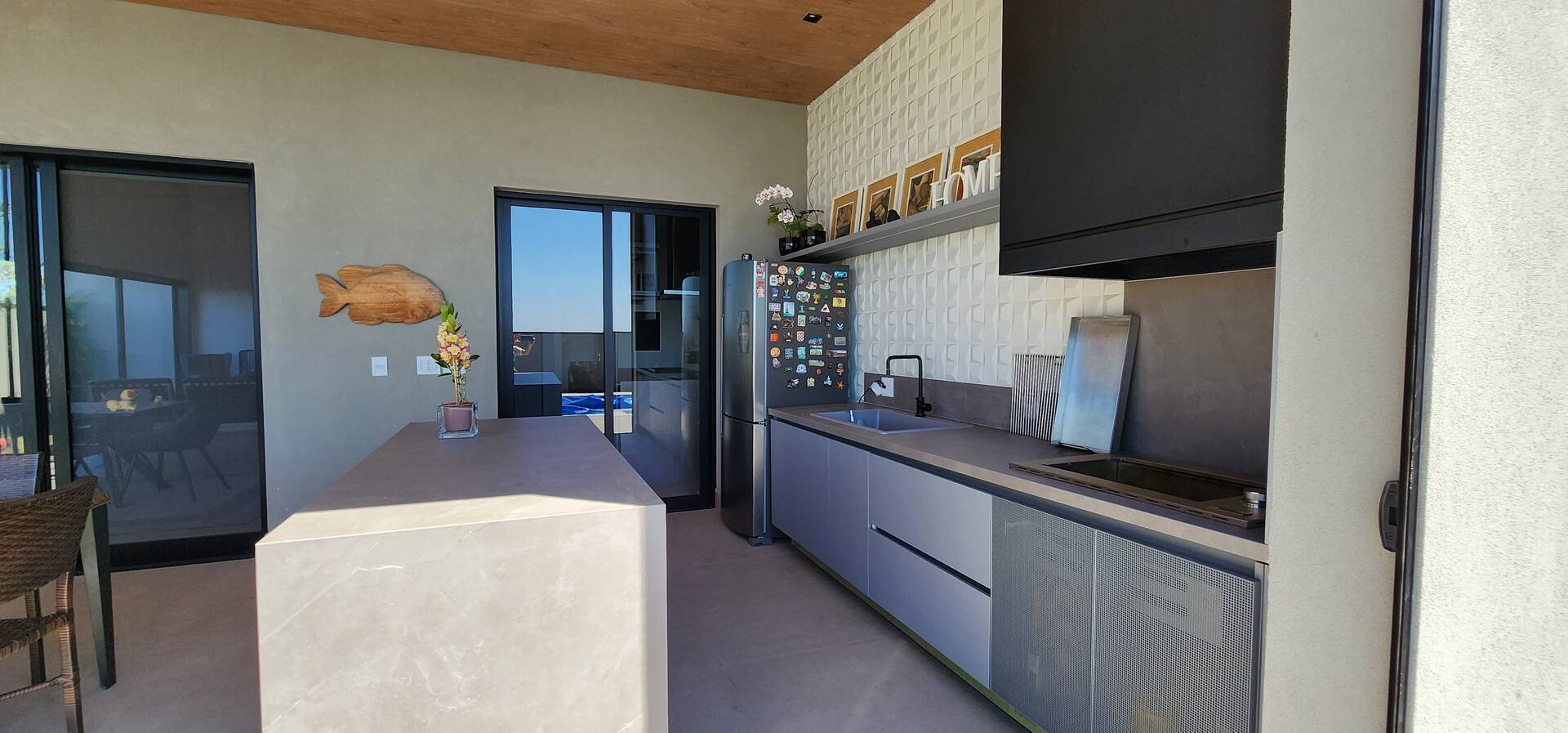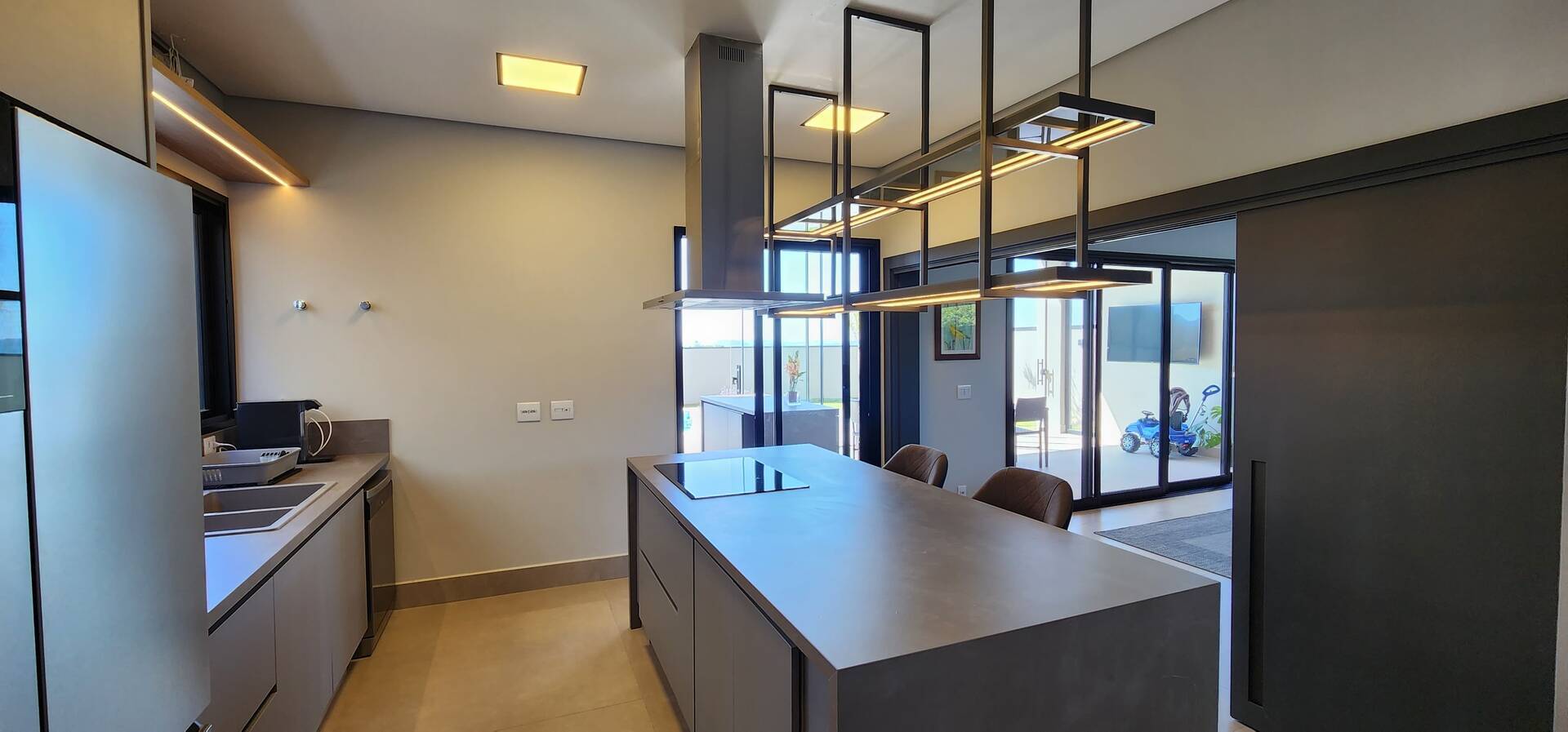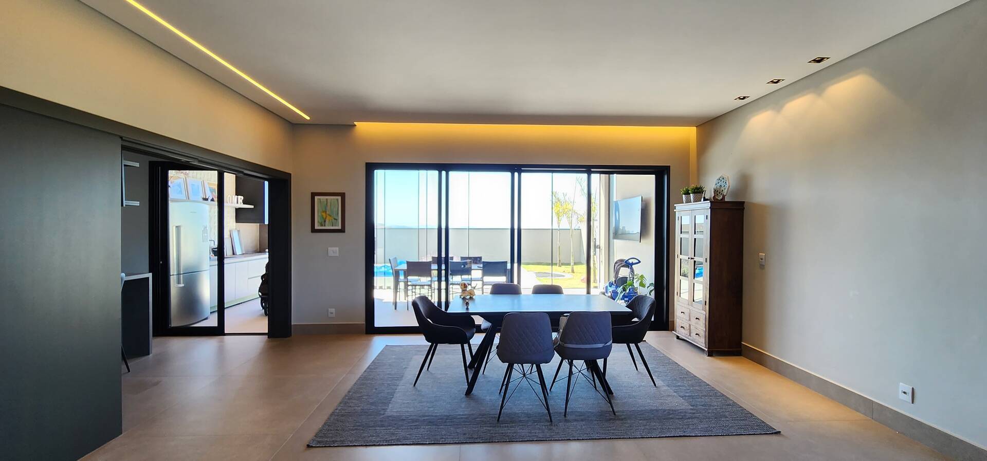As áreas sociais são espetaculares, com salas integradas que fluem naturalmente, tornando-se o cenário perfeito para reuniões e encontros. A cozinha é um exemplo de funcionalidade e bom gosto, com espaço para suas criações culinárias.