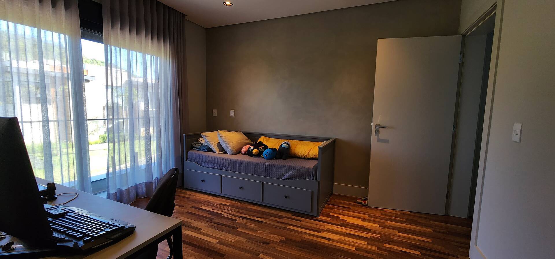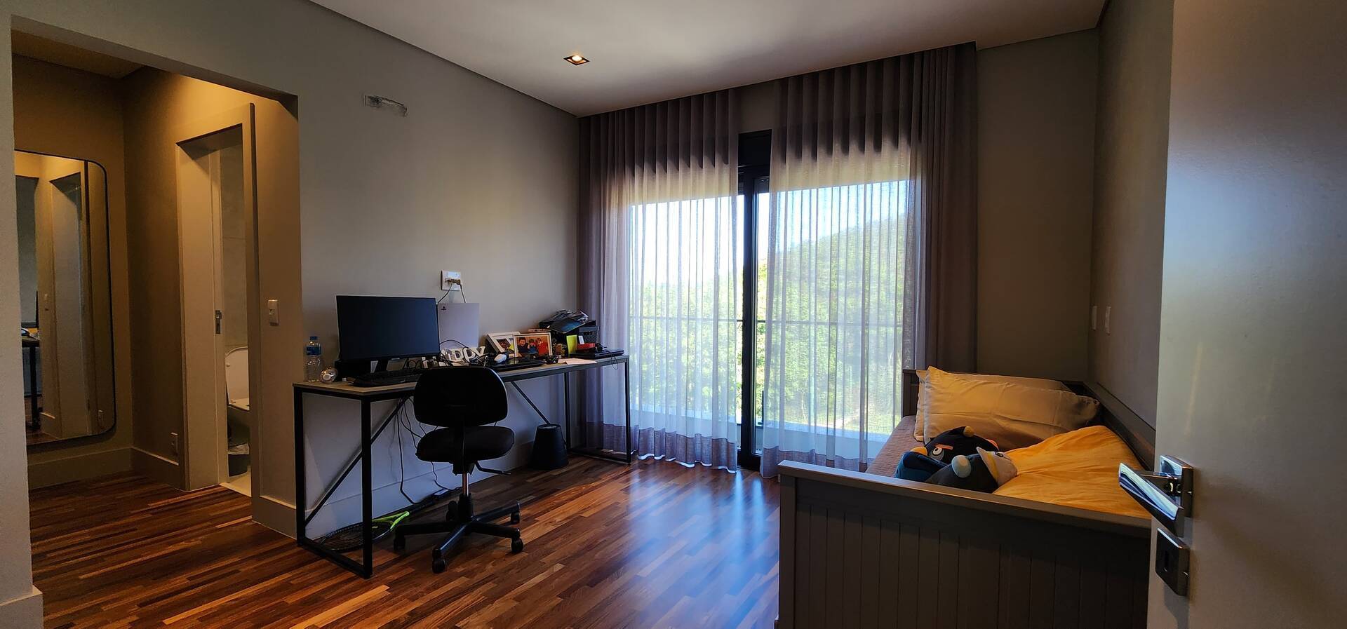 As 4 suítes proporcionam o máximo de privacidade e conforto para a sua família. A sala de TV é o lugar perfeito para noites aconchegantes em família, enquanto o escritório oferece espaço para trabalhar com tranquilidade.