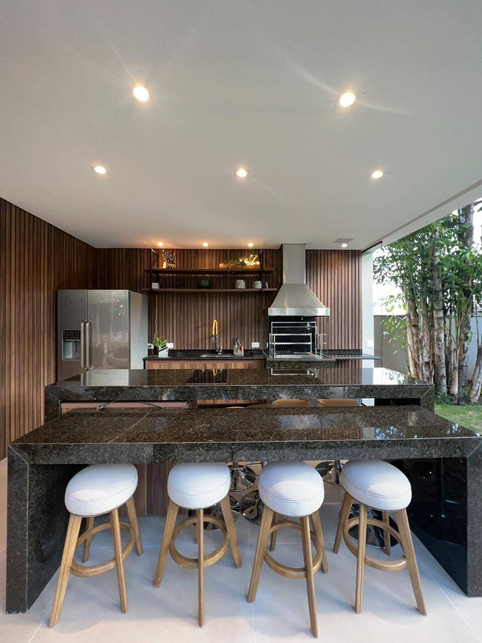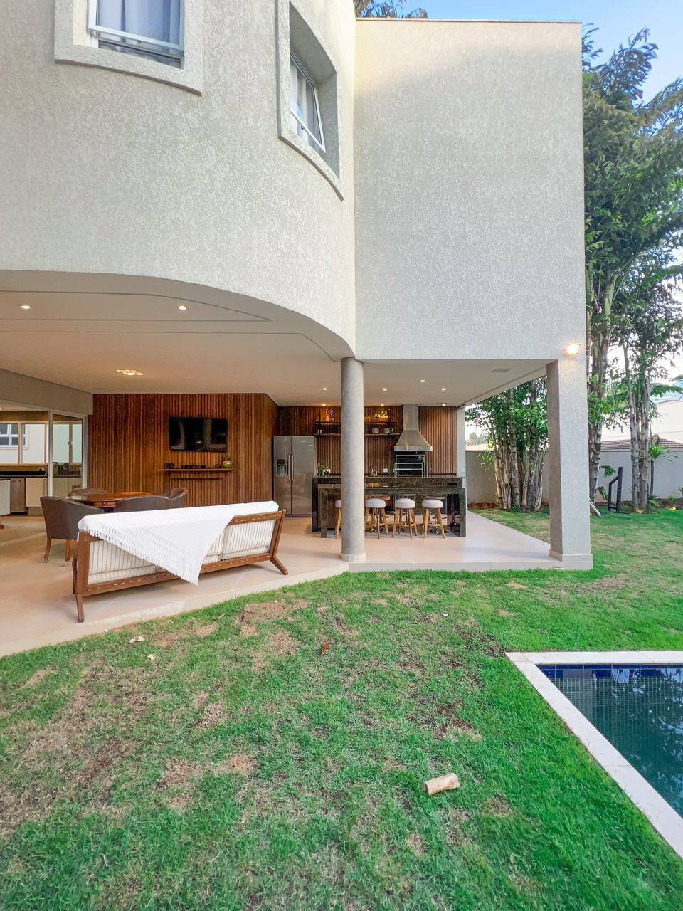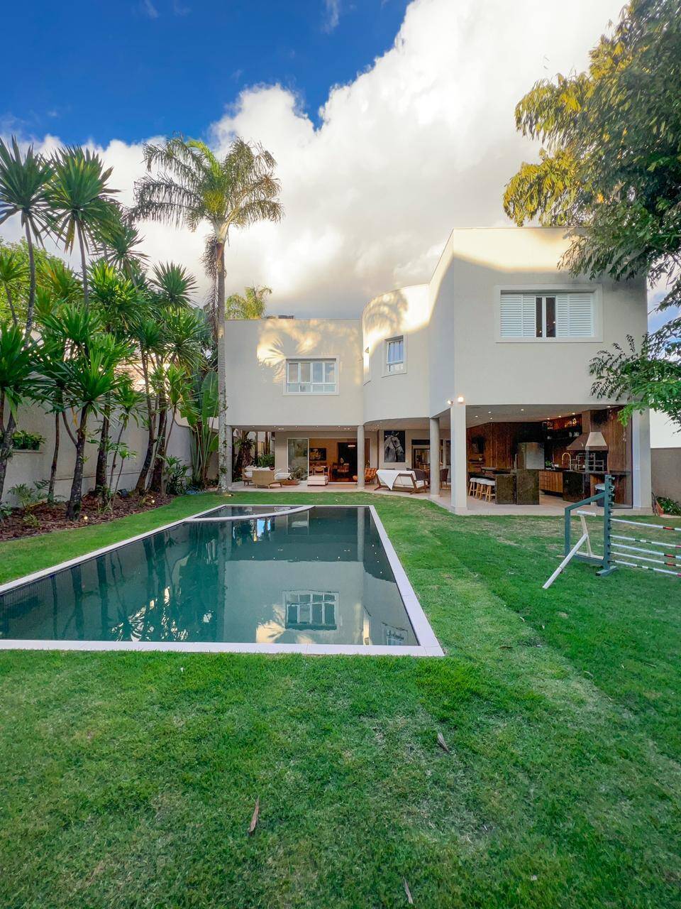 - Espaços amplos e versáteis: Com 736m² de área construída, a casa oferece ambientes amplos e integrados, perfeitos para receber amigos e familiares. A sala de estar, com três ambientes, a sala de cinema e o escritório garantem momentos de lazer e trabalho com o máximo de conforto.